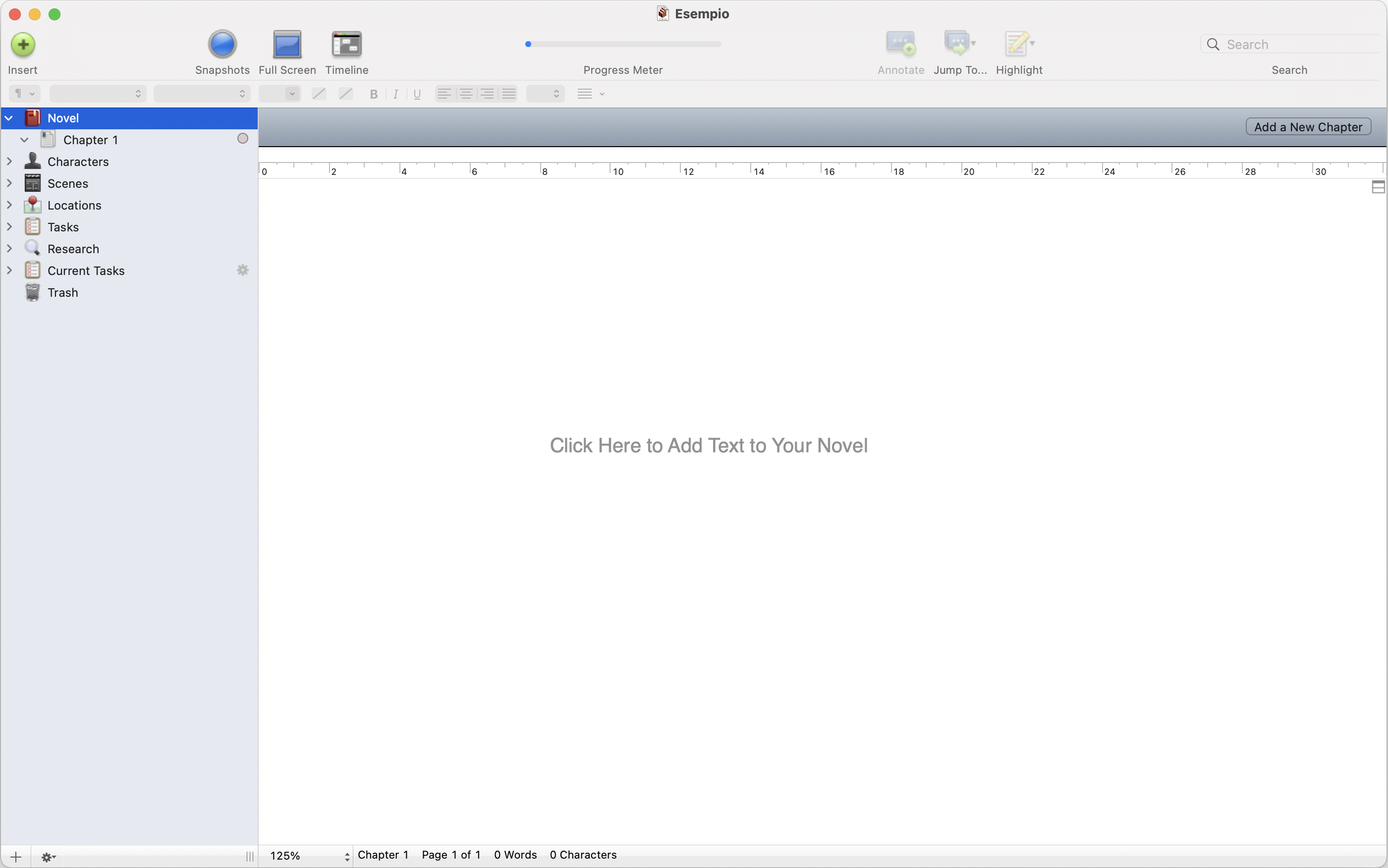 L'interfaccia dell'ultima versione di Storymill per Mac (4.0.5)
