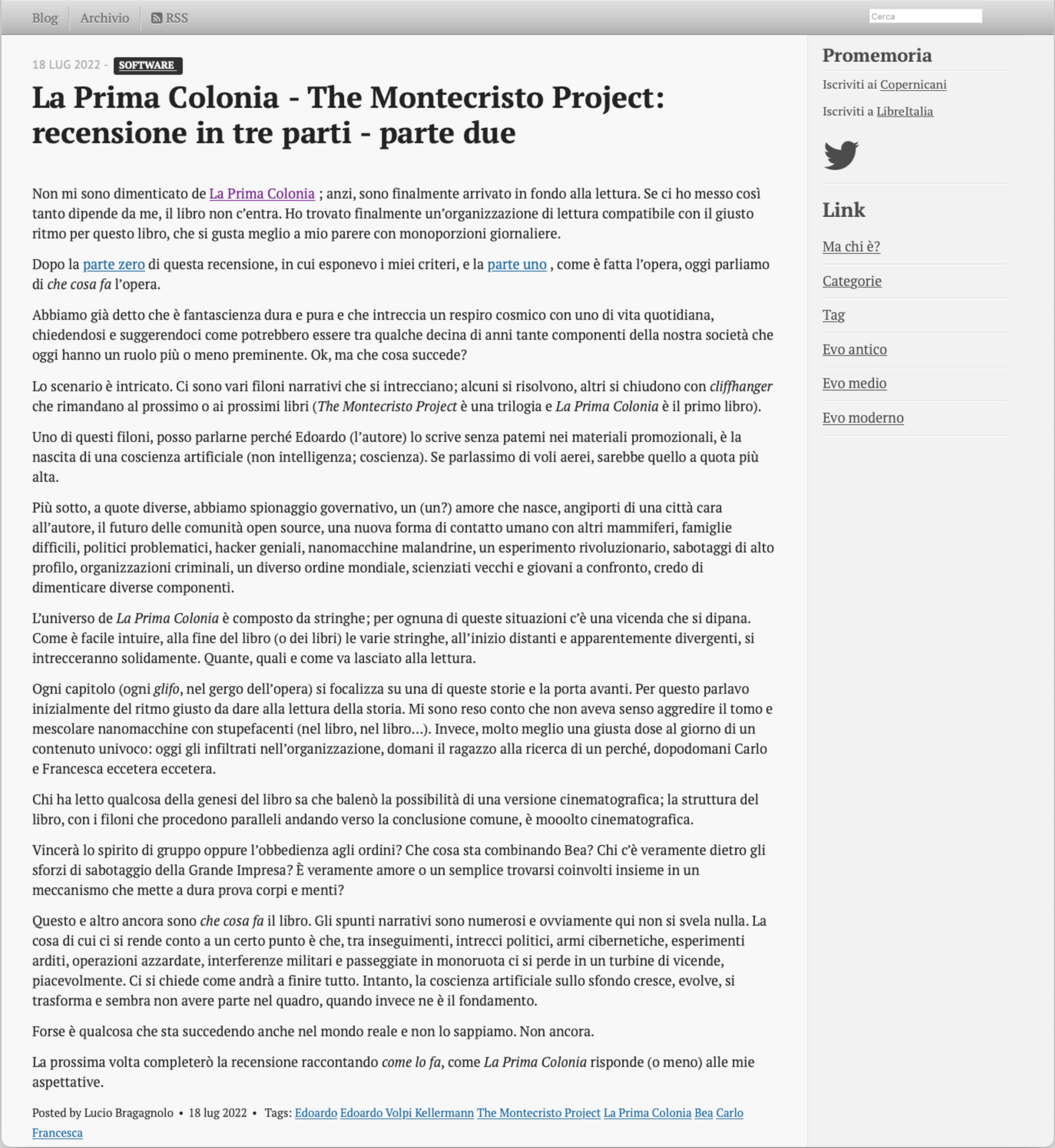 La prossima volta completerò la recensione raccontando come lo fa, come La Prima Colonia risponde (o meno) alle mie aspettative.