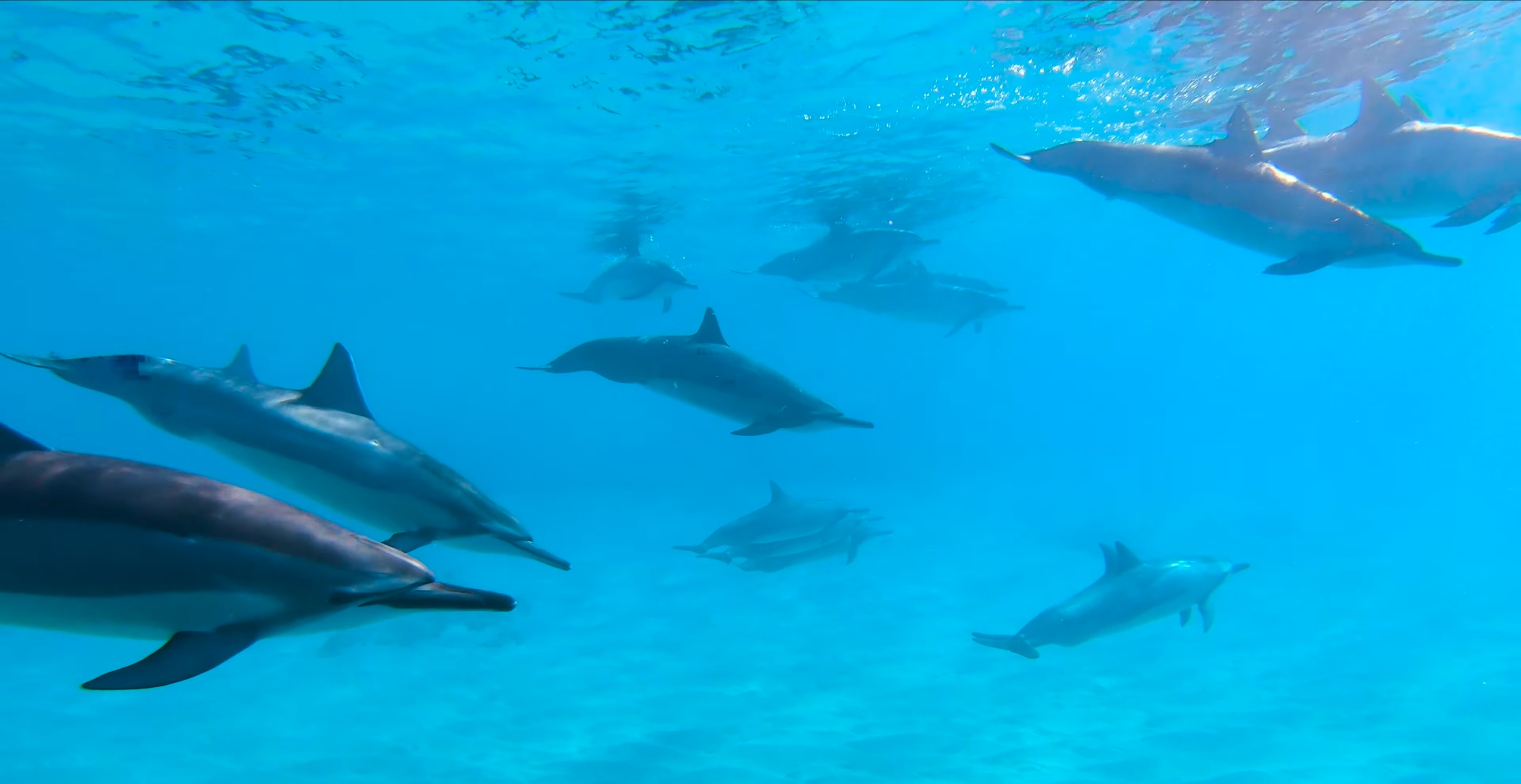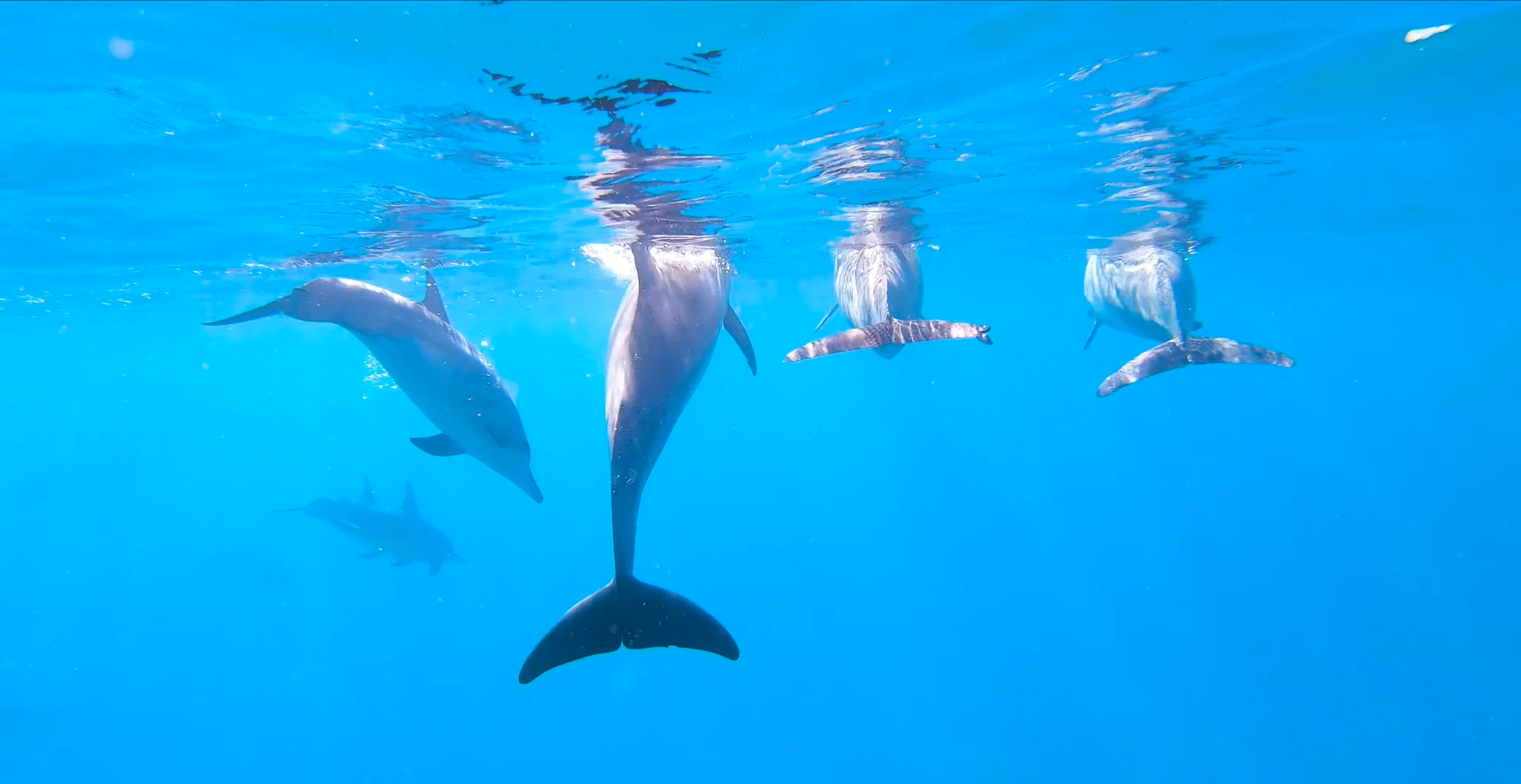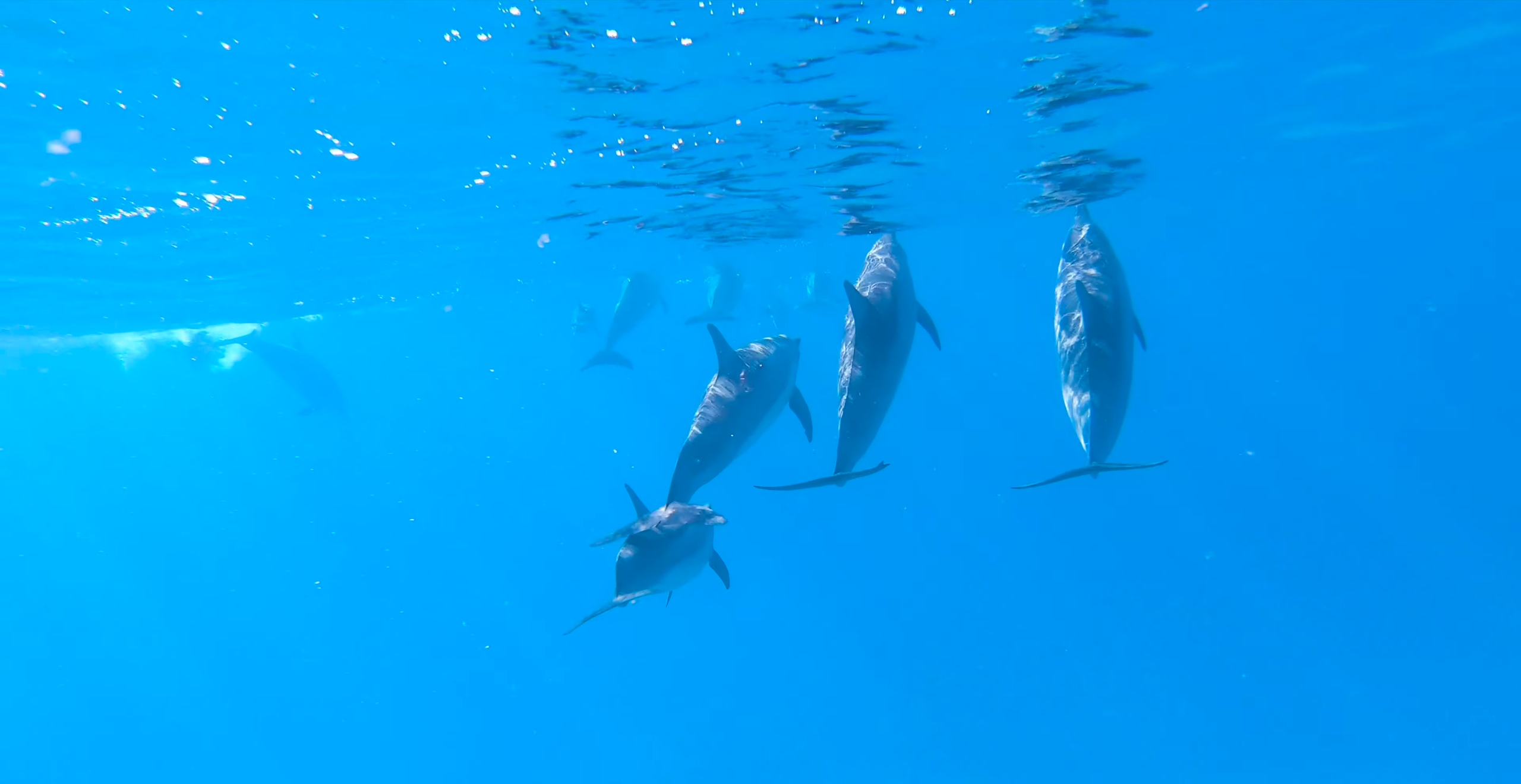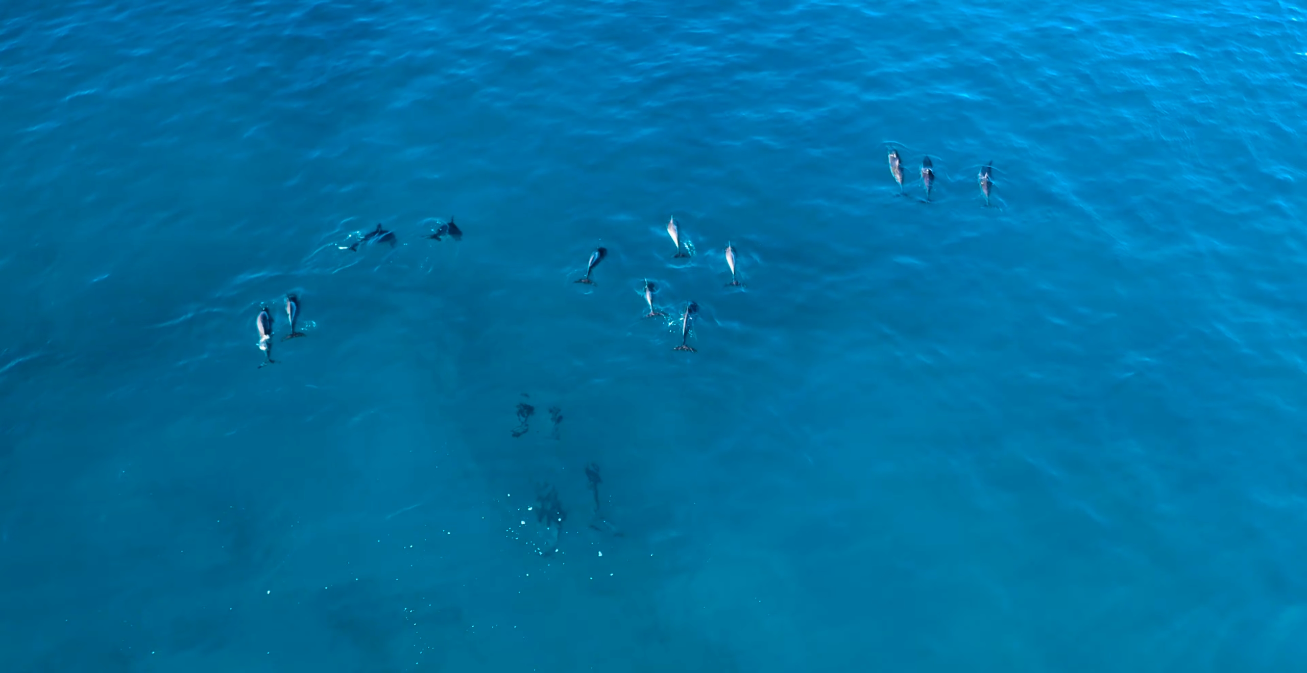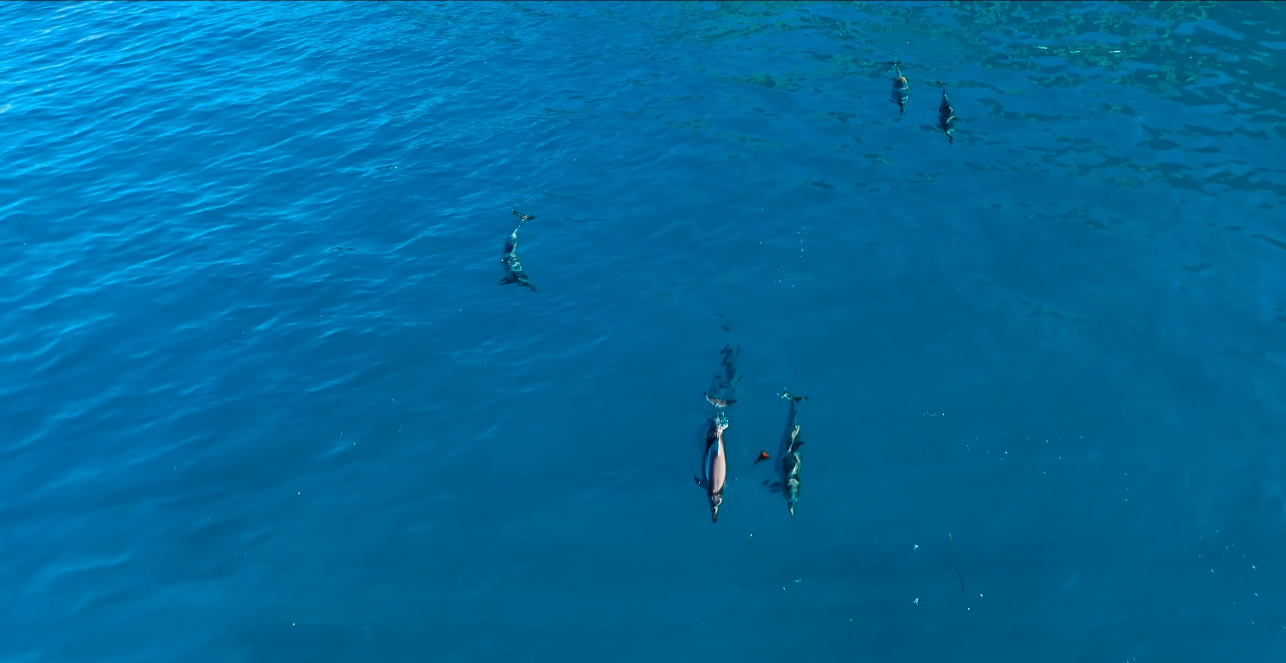 Saltare fuori dalla superficie spaventando i gabbiani, giocare a rincorrere le onde gareggiando in velocità con le creste sospinte dal vento di ponente. Slanciarsi in alto come siluri, girare su se stessi, arrotolarsi, immergersi nuovamente senza alzare schizzi, creare esplosioni sottomarine di bolle con accelerazioni improvvise.